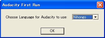 ![]() | 【9】 最初に起動する時は、左図の画面が現れるので、Nihongo または English を選び、[OK] ボタンをクリックします。 |