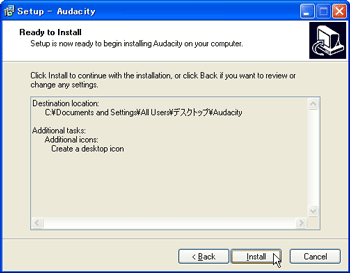 ![]() | 【7】 インストール先を画面で確認し、[Install] ボタンをクリックします。 |